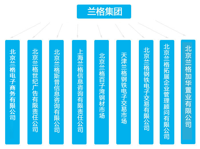 1996年,蘭格創(chuàng)辦了第一家公司----北京蘭格信息咨詢有限責(zé)任公司(2014年12月25日正式更名為北京蘭格電子商務(wù)有限公司)。隨后逐步開辦了北京蘭格世紀(jì)廣告有限責(zé)任公司、北京蘭格百子灣鋼材市場、上海蘭格信息咨詢有限責(zé)任息公司、北京蘭格鋼鐵電子交易有限公司等九個子公司。經(jīng)過多年的努力,蘭格已經(jīng)成長為一家實力雄厚的集團(tuán)化公司,躍入中國鋼鐵服務(wù)行業(yè)領(lǐng)軍企業(yè)的行列。