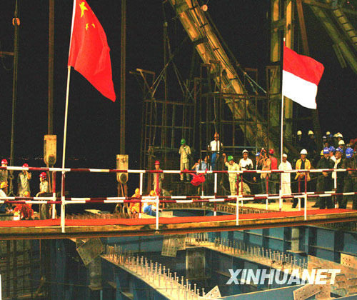 3月31日,由中國(guó)承包商聯(lián)營(yíng)體設(shè)計(jì)、施工總承包,經(jīng)過(guò)中國(guó)和印尼承建商3年多的合作,東南亞最大的跨海大橋——印度尼西亞泗水一馬都拉大橋(泗馬大橋)合龍。