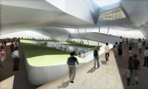 造型亮點:展館四面呈開放狀,其建筑設計給人輕盈、飄逸的感覺